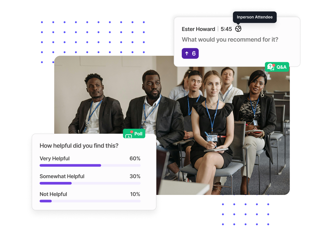 Whether you're hosting a fully in-person event, fully virtual event or combining in-person and virtual elements, Townhall ensures smooth participation for all. There's no need for complex integrations or tech headaches as everything works seamlessly, whether your audience is in the same room or across the globe.