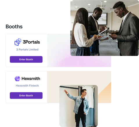 Transform hybrid and virtual events with interactive digital booths. Let attendees explore engaging content, download resources, and connect directly with booth reps through live chats or video calls. Make every attendee feel like a part of the action, no matter where they are.
