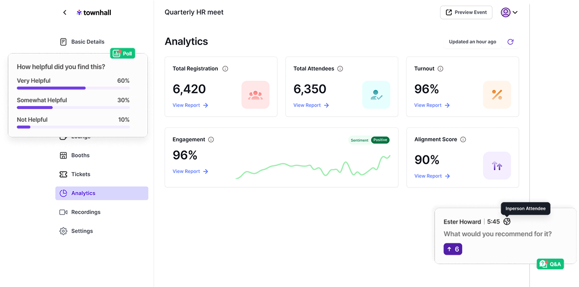 Get post-event insights on sentiment, participation, and alignment. See who’s engaged and who’s not.